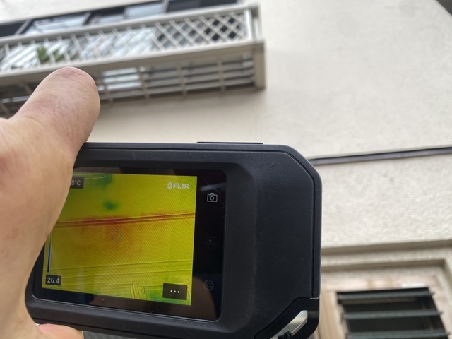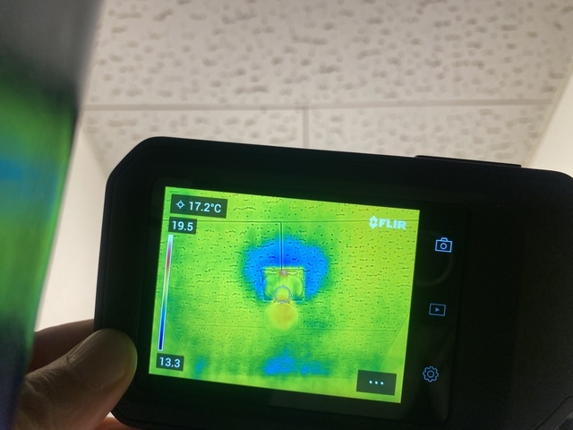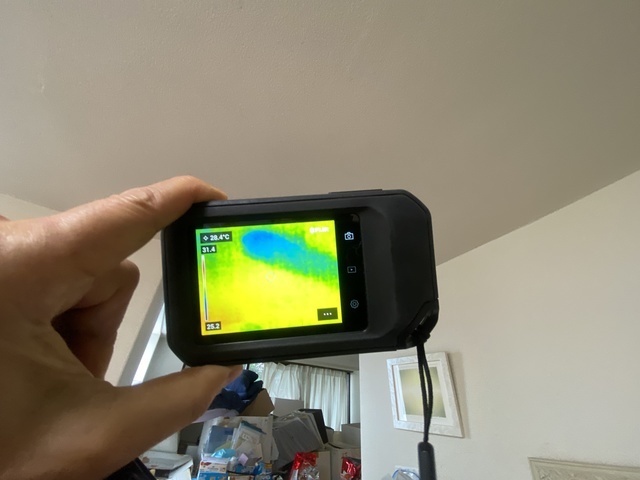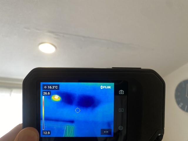 赤外線画像なので濃い青い部分が雨漏り菓子です。