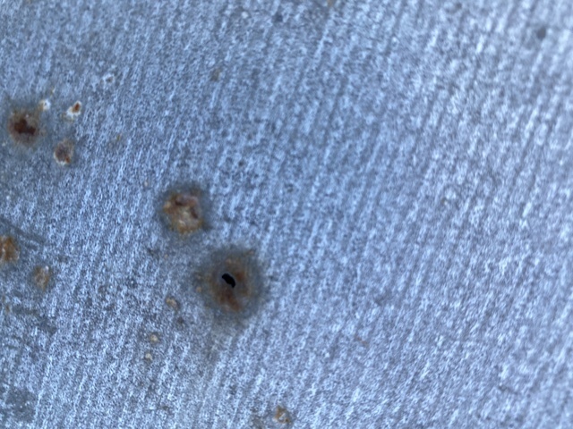 雨漏りしたということで屋根の確認をしたら、屋根材に錆があり、穴が開いていました。