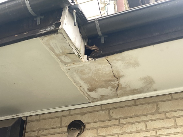 1階屋根の軒天から雨漏りしています。